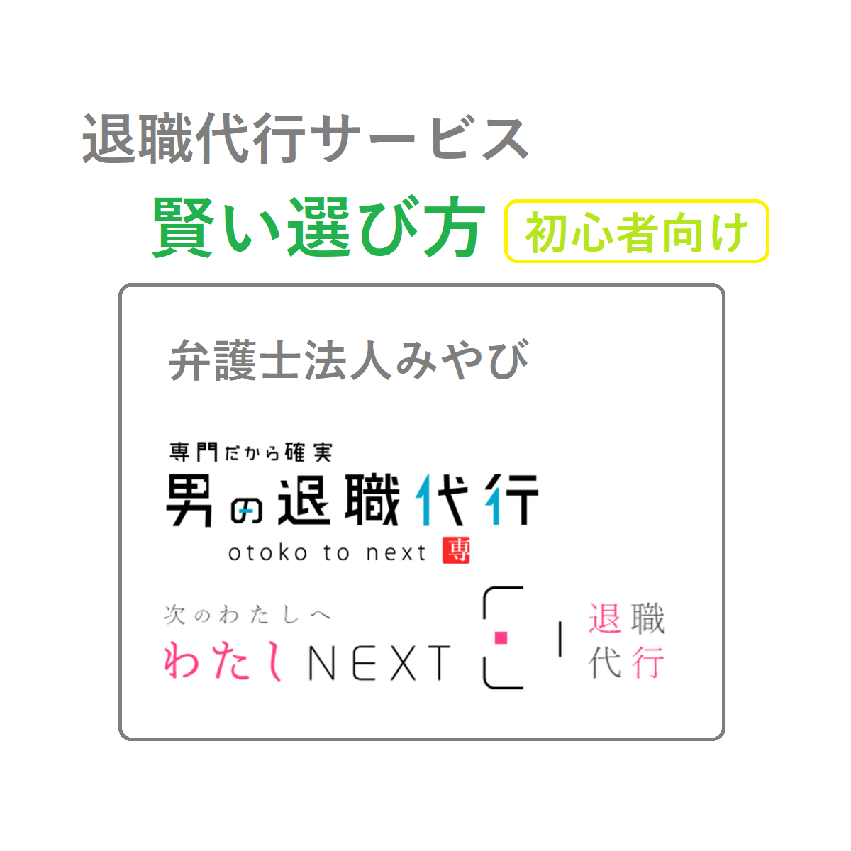 | 口コミ | ◎ 退職代行の結果は無事に即日で退職!本当に感謝。 口コミ多数 ⇒男の退職代行の口コミ  | ◎ あっという間に退職することができました。 口コミ多数 ⇒わたしNEXTの口コミ  | ◎ 会社側と何か問題があっても弁護士が対応してくれる。 口コミ多数 ⇒みやびの口コミ  |